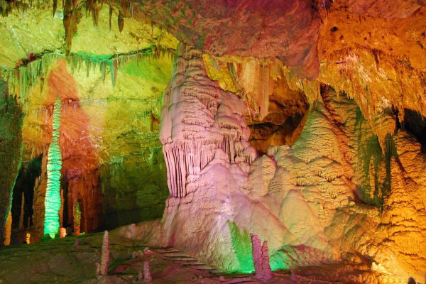 “天堂”精彩紛呈,美不勝收,,有大的景點(diǎn)32處。溶性碳酸鹽巖在漫長(zhǎng)的歲月里,變幻出多姿百態(tài),豐韻萬(wàn)千的眾多造型,為“天堂”造就了美妙絕倫的意境。“南天門(mén)”高聳入云,“仙女出浴”百媚千嬌,“御筆天書(shū)”維妙維肖,“凌霄殿”虛無(wú)縹緲,“玉樹(shù)瓊花”繁花似錦,“逍遙宮”如詩(shī)如畫(huà),“瑤池”銀波蕩漾,“紫宵宮”三門(mén)雄關(guān),“百鳥(niǎo)朝鳳”令人神往,“廣寒宮”寬闊空寂,……“天堂”面積5000多平方米,除了32處大景點(diǎn),還有浩如星辰,不勝枚數(shù)的眾多小景點(diǎn)。它們一起構(gòu)成了“天堂”那峰回路轉(zhuǎn)、光怪陸離,既寬闊幽遠(yuǎn),又雄偉莊嚴(yán),且瑰麗奇妙的無(wú)邊美景。