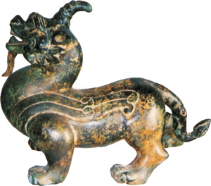 森林看到獨角獸出沒,此獸與流傳下來的中國古代瑞獸圖形酷似:身形似虎,通身赤紅,頭頂正中有弧形獨角,遇有人近前則迅疾隱沒不見 .