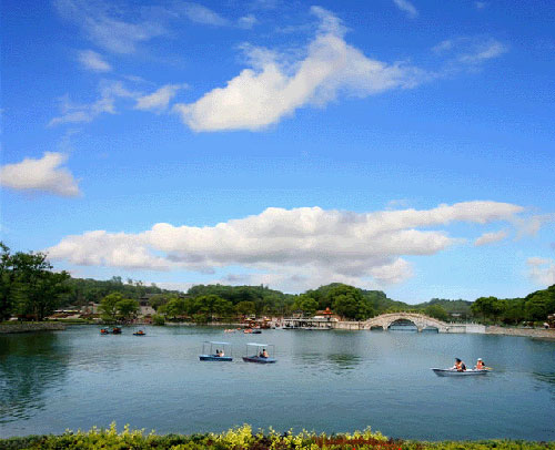 君山又是一個(gè)秀麗的綠洲,島上的草木自古就很聞名?,F(xiàn)在每逢初春漲水之前,湖灘上綠草綿綿,野花斑斕,頗具草原風(fēng)味;一到夏天水漲,葦葉青青,水鳥(niǎo)出沒(méi),又是一派蘆蕩景象。君山有各種各樣的樹(shù),多達(dá)200余種,各種花卉,四時(shí)怒放,真是青碧連云,香飄全島。叢綠之中,尤以竹林、茶園最富特色。